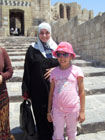 Anschließend sehen wir uns dass nächtliche Aleppo an. Ich bin verwundert wie viele Frauen hier durchaus westlich gekleidet und ohne Kopftuch in den Cafés sitzen. Es gibt natürlich keinen Alkohol, dafür dampfen an jedem Tisch die Wasserpfeifen. Neben der, in Syrien und Jordanien üblichen, strikten Trennung der Gaststätten zwischen Frauen und Männern, gibt es hier in Aleppo aber auch Lokalitäten für Familien oder Paare. Wir unternehmen noch einen Rundgang durch die schmalen Gassen der Altstadt. Am nächsten Morgen besichtigen wir die eindrucksvolle Zitadelle. Anscheinend mache ich mit meinen langen Haaren hier einen solch außerirdischen Eindruck, dass ein kleines Mädchen unbedingt mit mir gemeinsam fotografiert werden möchte.
